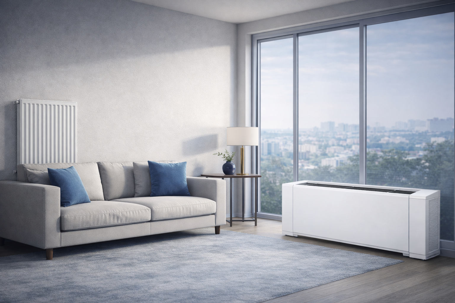 Ultra-tenký ventilátorový konvektor navrhnutý pre efektívnu distribúciu vykurovania a chladenia v rezidenčných a komerčných priestoroch.